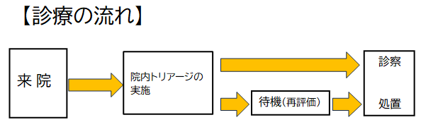・トリアージは、患者さんの状態を観察し、重症度・緊急度を判断して早い診察の繋げることを目的としています。